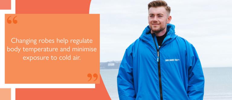 Wet skin will cool quicker than dry skin. An outdoor changing robe will keep you warm and regulate body temperature, as it is designed to dry the body quickly.