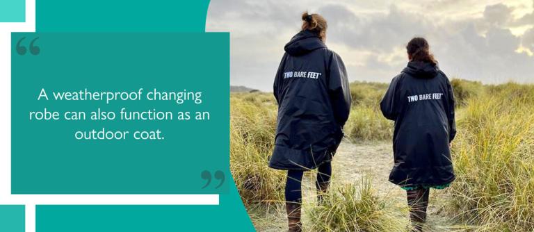 Because weatherproof changing robes are weather-resistant and can be worn for extended periods, they can function as outdoor coats, providing continual comfort, warmth, and protection.